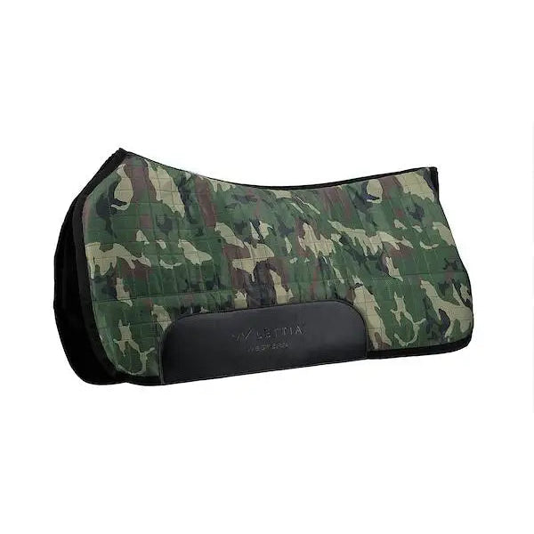 Get ready to ride in style with the Lettia Camo Western Pad! Expertly contoured at the wither for a comfy fit, this saddle pad is handmade from 100% synthetic felt that keeps your horse cool and dry thanks to its moisture-wicking, quick-dry CoolMax lining. Plus, the wear leathers protect against fender rubs, making it as tough as it is comfy. Perfect for horses who like to look sharp and feel great!